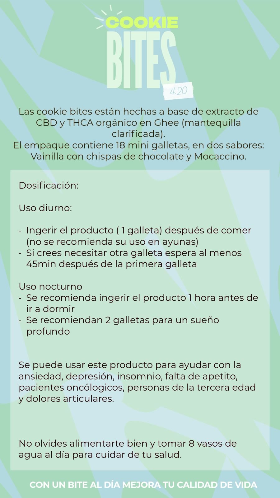 + Envío gratisCookie bites hechas con masa madre, relleno glacial mágico con mantequilla ghee CBD y toppings de chocolate Paccari o M&M’S